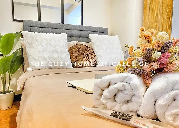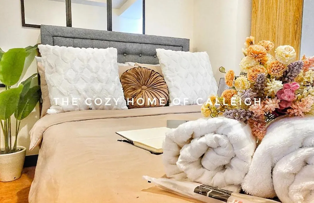 34m²のThe Cozy Home Of Calleigh In Allegra マニラ市アパートはナショナル・シュライン・オブ・アワー・レディー・オブ・グアダループから2.6km離れた所に位置し、宿泊から車で10分離れたブエンディア鉄道駅へ行きやすいです。 アパートにプールの景色を望むテラスがあります。